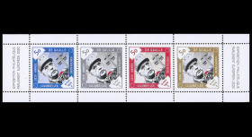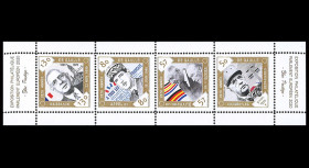 3) PERFORATED block of 4 labels (cinderellas) “2020 Year of Gaulle (1890-1970) - Signature of the Franco-German Elysée Treaty by French President Charles de Gaulle and German Chancellor Konrad Adenauer, January 22, 1963"