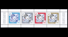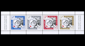 2) PERFORATED block of 4 labels (cinderellas) “2020 Year of Gaulle (1890-1970) - 80th anniversary of the Appeal ("Appel du 18 juin") made by General de Gaulle - the leader of the Free French Forces - on the BBC in London on 18 June 1940, after the fall of France"