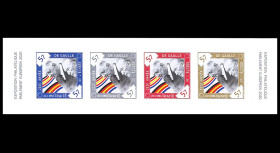 3) IMPERFORATED block of 4 labels (cinderellas) “2020 Year of Gaulle (1890-1970) - Signature of the Franco-German Elysée Treaty by French President Charles de Gaulle and German Chancellor Konrad Adenauer, January 22, 1963"
