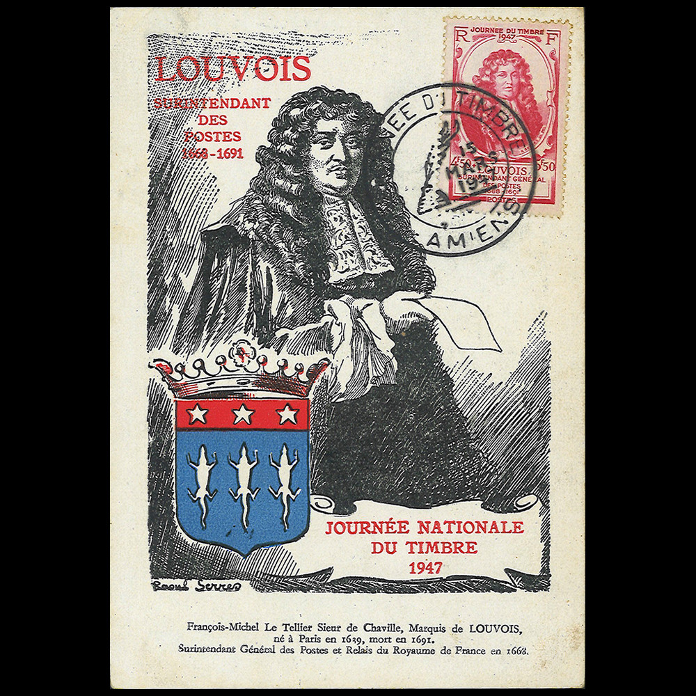 - Postage France 4f50 + 5f50 "Stamp Day 1947 - Louvois, Postmaster General 1668-1691"(Yvert 779)