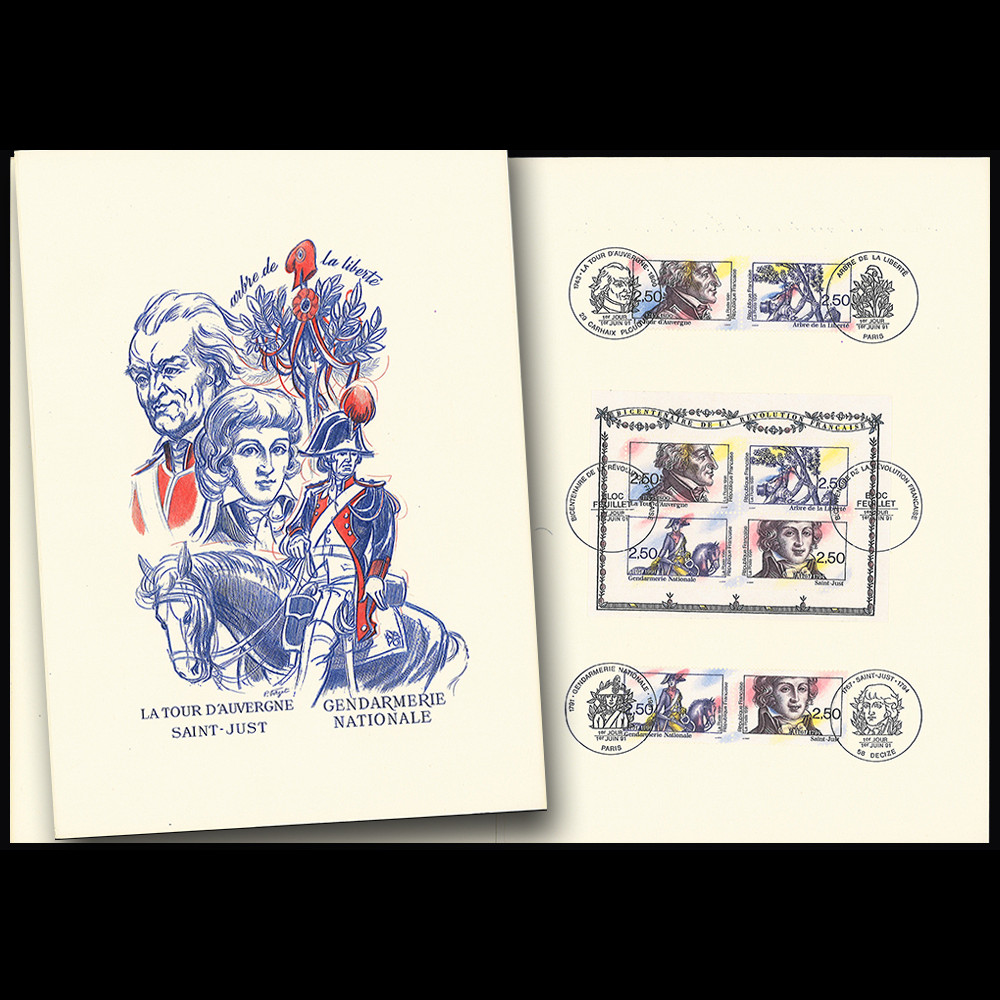 - BLOCK of 4 x 2.50F "La Tour d'Auvergne", "National Gendarmerie", "Tree of Liberty", "Saint Just" (Yvert Block No. 13) cancelled "Block First Day of Issue" 01.06.1991