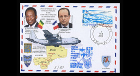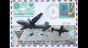 + Blue cachet Gao "OPERATION SERVAL IN MALI 2013 / Airborne operation for the Liberation of Gao - Aircraft TRANSALL C-160" (Mali) dated January 25-26, 2013