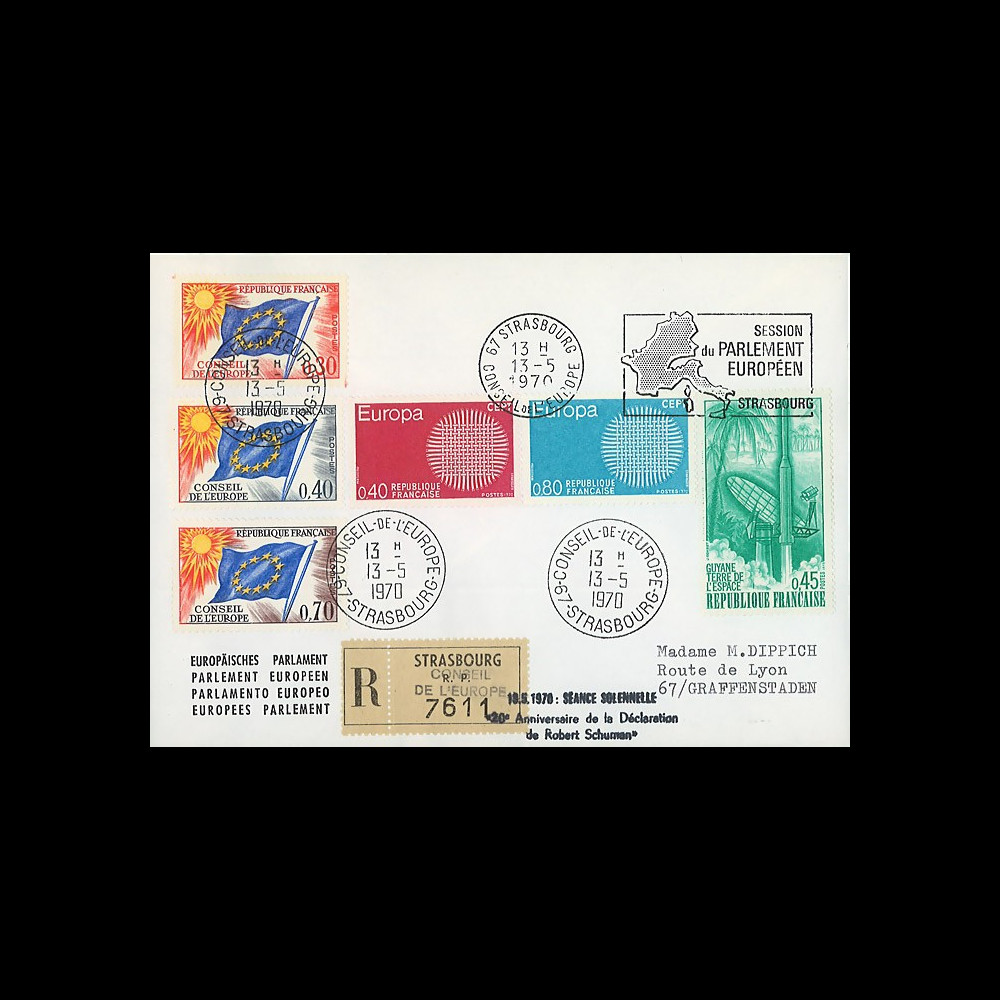 Slogan cancellation 13.5.1970 European Parliament and handstamp