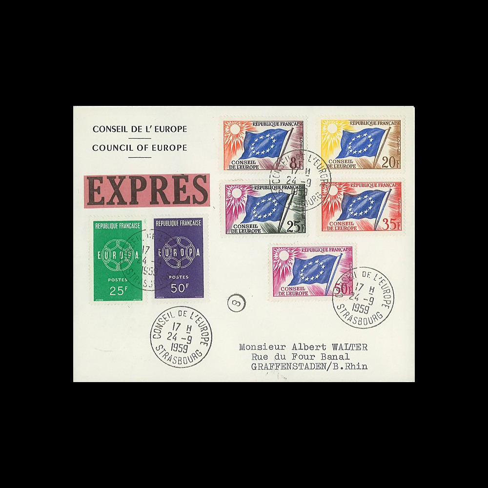 Postage 2 values stamp 25F + 50F "Europa 1959" and 4 values stamp on official business 20F + 25F + 35F + 50F "European Council"