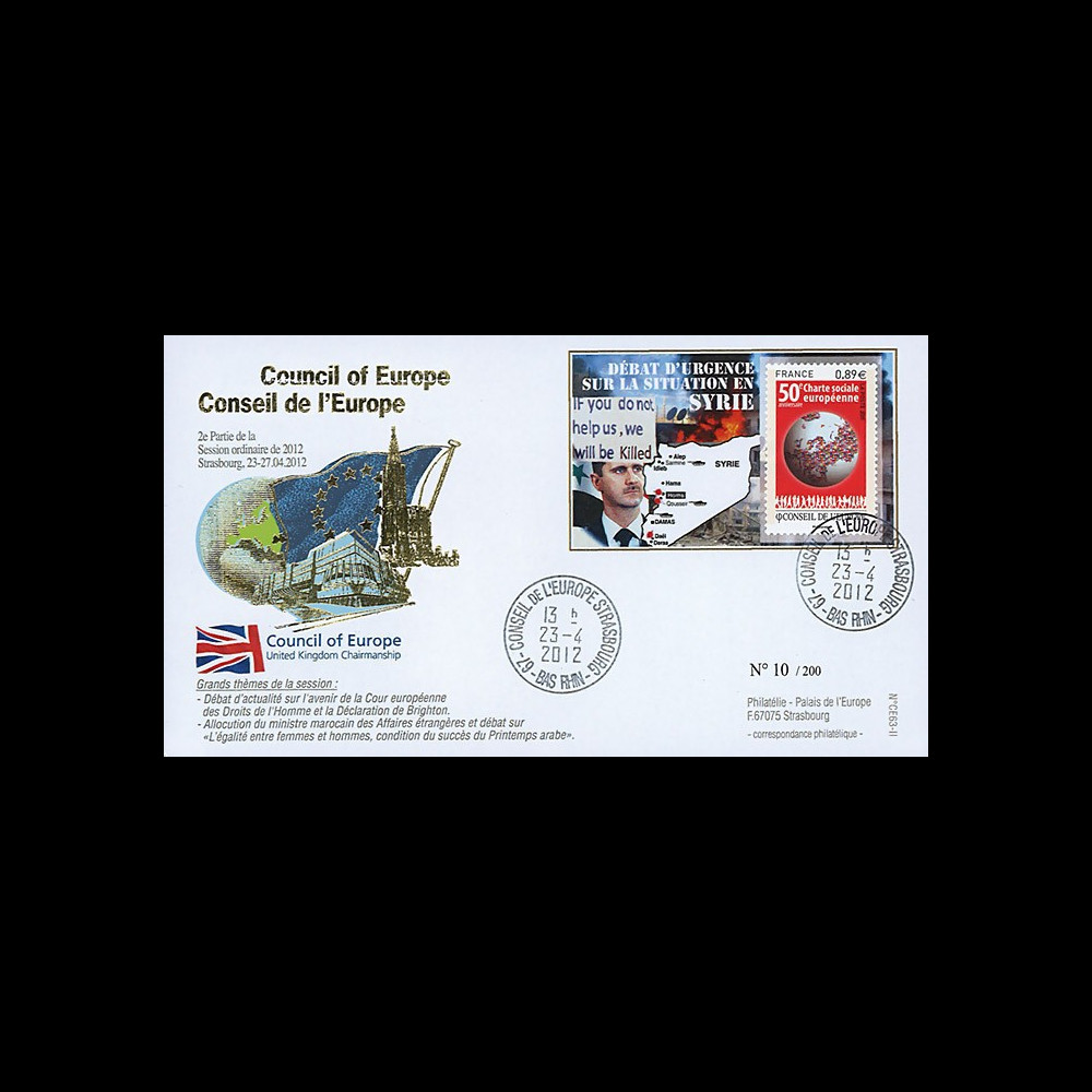 N°CE63-II : FDC 'Premium Edition' Second Part of the regular session of the Council of Europe Parliamentary Assembly to Strasbourg (France) April 23-27, 2012 "April 23, 2012 : Urgent debate on the situation in Syria - Mr. Bashar AL ASSAD, President of Syria" :