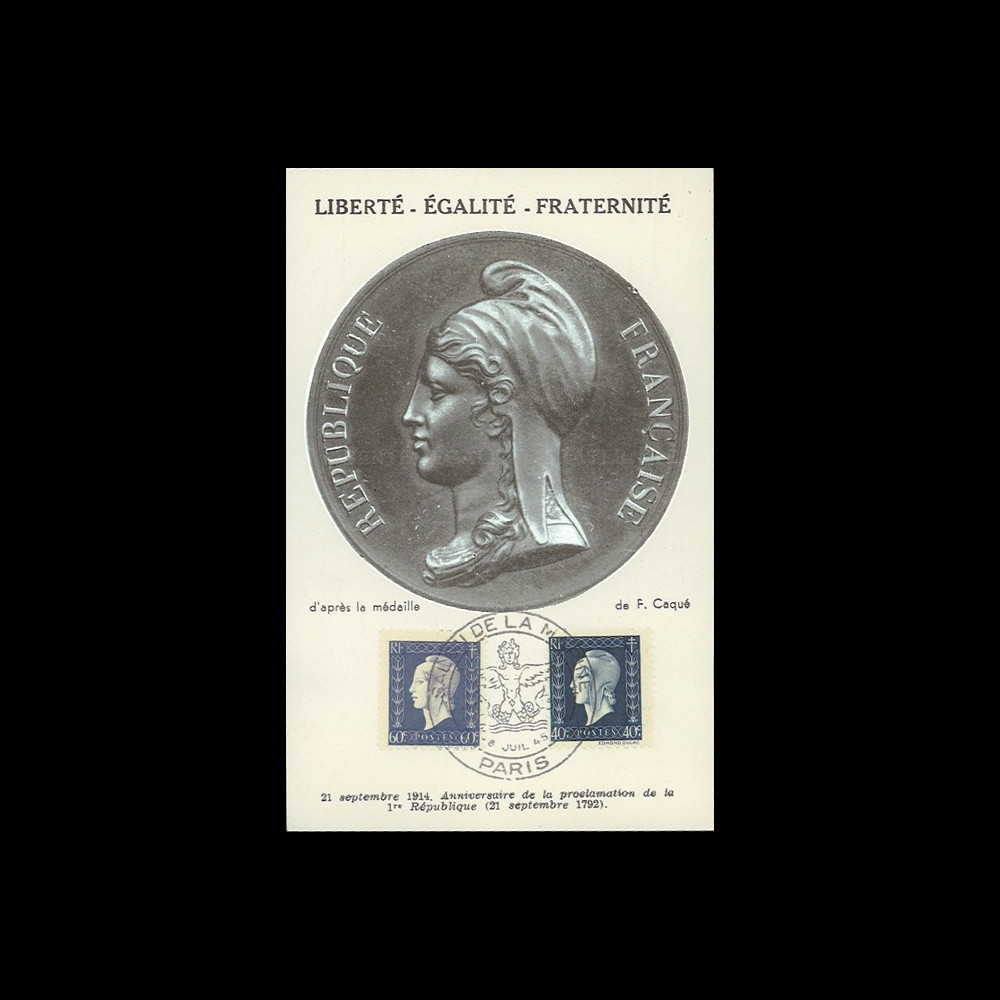 N°W2-FR684/86-A1 : Carte maximum “Liberté-Égalité-Fraternité / médaille de Caqué”