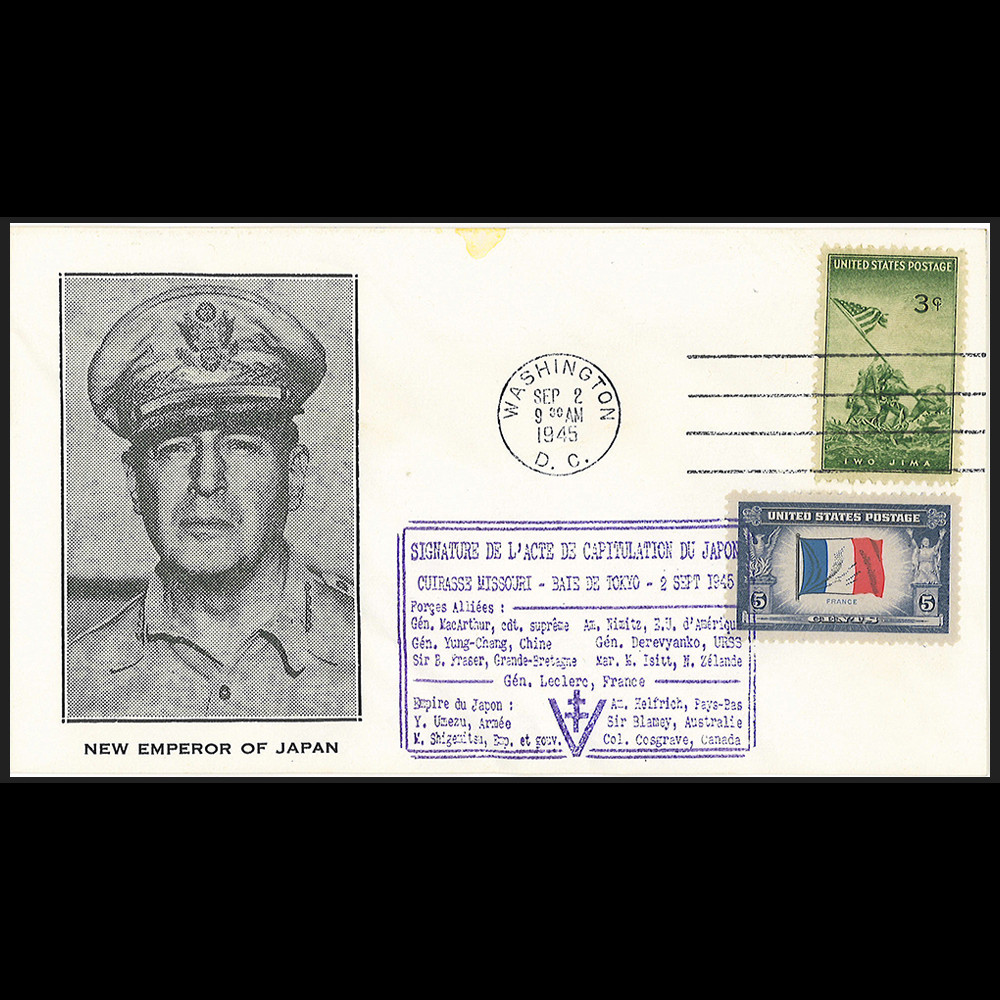 N°W2-VJ45LT3 : Authentic Patriotic Cover USA "September 2, 1945 : Victory Japan Day (V-J DAY) - CAPITULATION OF THE EMPIRE OF JAPAN / General MacArthur, New Empiror of Japan" 1945 :