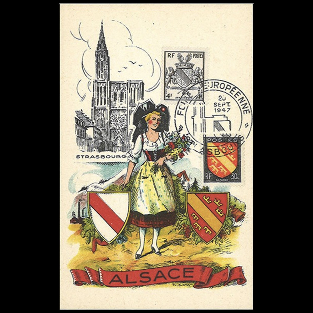 W2-FR756D3: Maxi Card France "LIBERATION OF STRASBOURG by the 2nd Armored Division of General Leclerc, November 22, 1944 - Cathedral of Strasbourg and Alsatian"