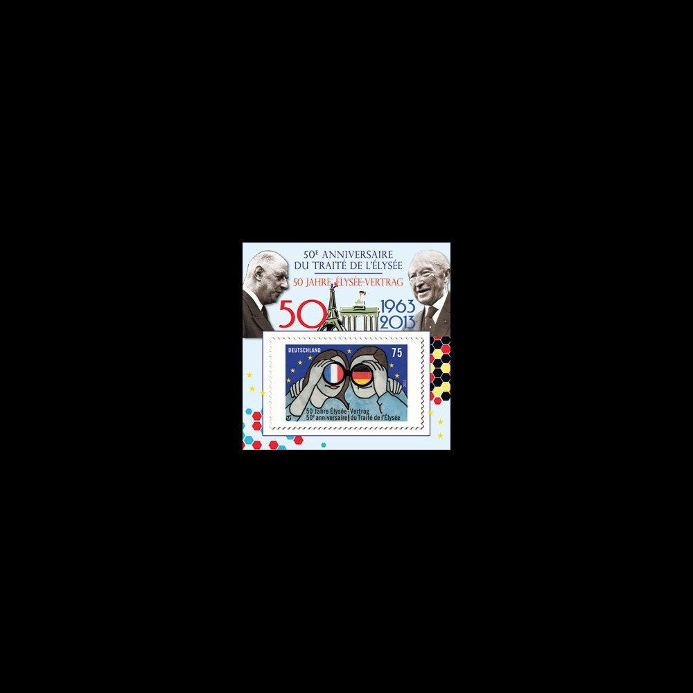 N°PE634-PT : Private BLUE Stamp Display Unit "1963-2013 : 50th anniversary of the Élysée Treaty - Mr. Charles DE GAULLE, President of France & Mr. Konrad ADENAUER, Chancellor of the Federal Republic of Germany / Eiffel Tower and Brandenburg Gate"