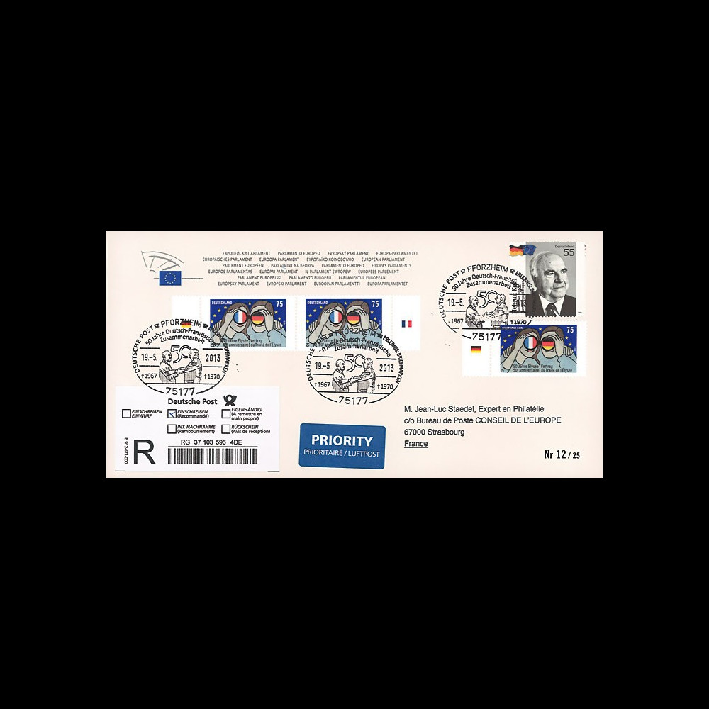 Postmarked in Pforzheim (Temporary office in European Parliament) "50 Jahre Deutsch-Französische Zusammenarbeit" dated May, 19 2013