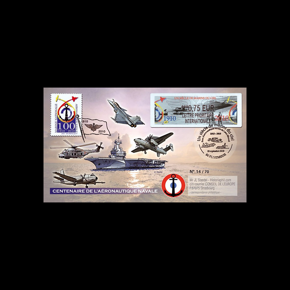 Franked TYPE 3 : France 1 value LISA 0,75€ "One Century of the Sky Mariners, 2010" postmarked in Ploemeur "Naval Air Base Lann-Bihoue / One Century of the Sky Mariners" (France) dated September 18, 2010