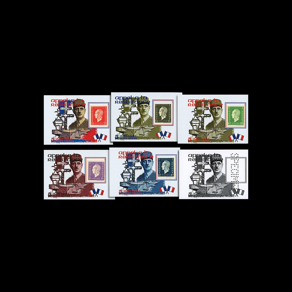 N°PADG008V : set of 6 Stamp Display Units «Aircraft Carrier de Gaulle - 18th june 1940 : Appeal for Resistance» (size 8,5 x 6 cm)