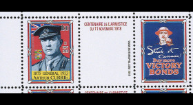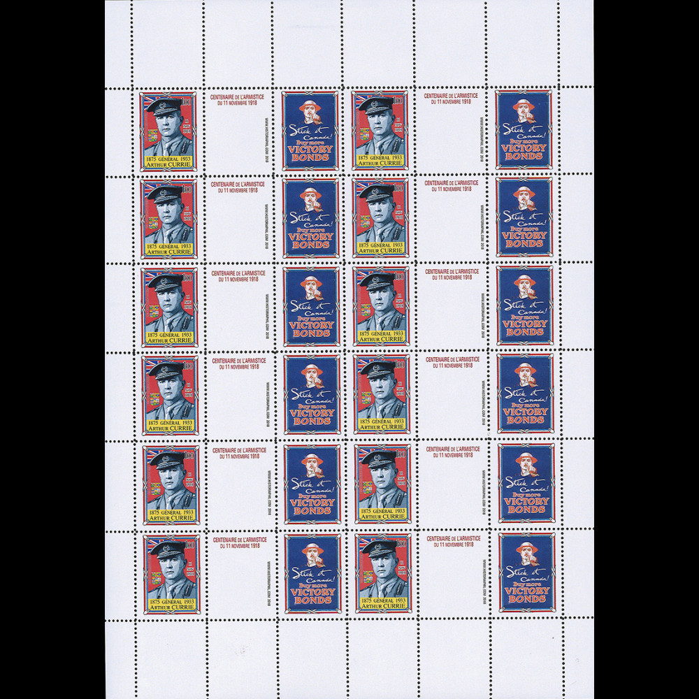 CENT18-3PTF : 2018 France - Full sheet of 12 x cinderella stamp blocks of 3, perforated und gummed “Centenary of Armistice 1918-2018 / General A. Currie, Commander of the Canadian Expeditionary Forces Corps"