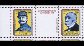 CENT18-7PTF : 2018 France - Full sheet of 12 x cinderella stamp blocks of 3, perforated und gummed “Centenary of Armistice 1918-2018 / Marshall Foch and the President of the Council Georges Clemenceau (F)"