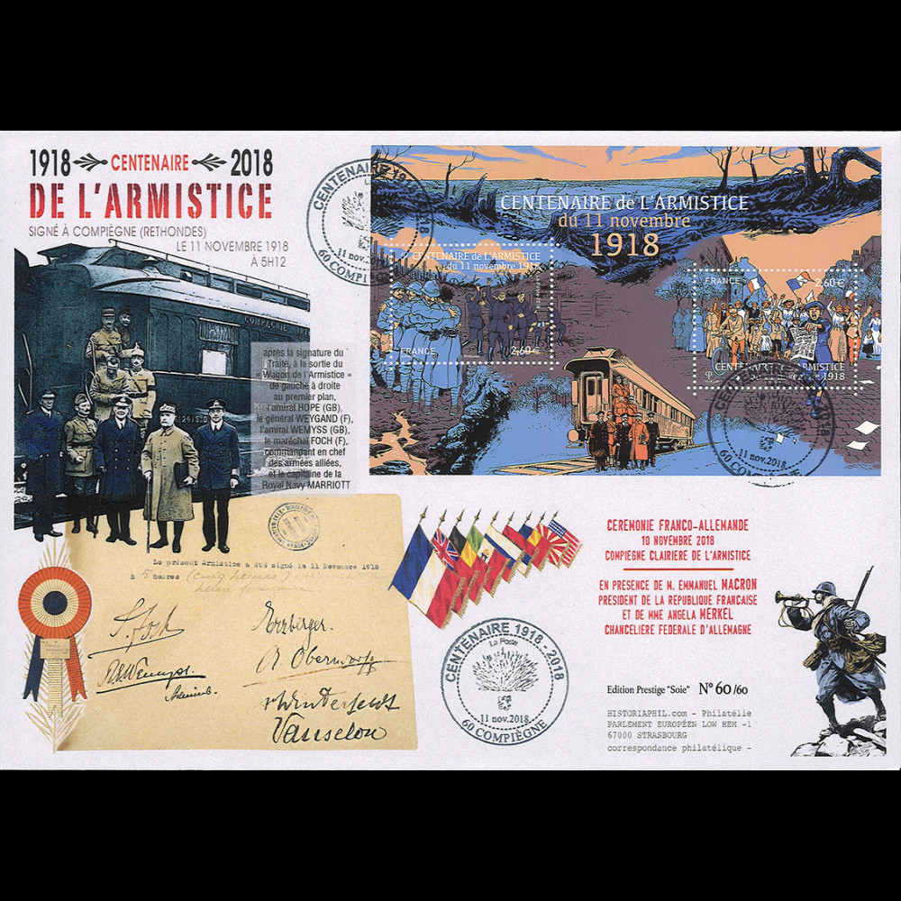 The armistice was signed on November 11, 1918 at 5:20 am in the wagon built from Marshal Foch's staff train, in the Rethondes clearing, in the Compiègne forest. It marks the end of the fighting, the victory of the Allies and the total defeat of Germany, but it is not a capitulation literally. The ceasefire is effective on the 11th day of the 11th month of 1918 at 11 am, announcing the end of a war that has left more than 18.6 million dead, invalids and war dead for all belligerents. mutilated, including 8 million civilians.