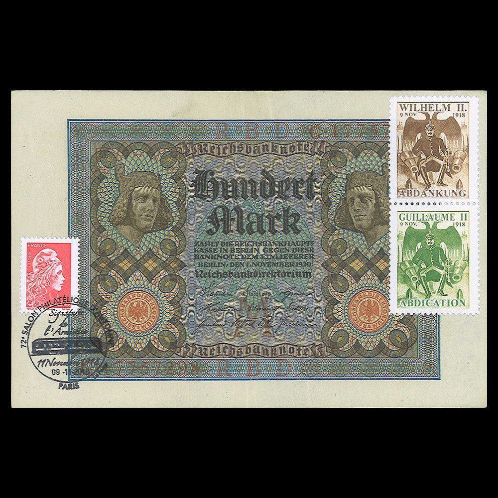 The mutinies of the German navy of autumn 1918 and the establishment of workers councils in all the great cities of the empire forced the Kaiser to give up not only the German throne but also the Prussian throne. the Kaiser William II had no choice but to resign himself to officially surrender on November 9, 1918, and the Weimar Republic was proclaimed the same day.