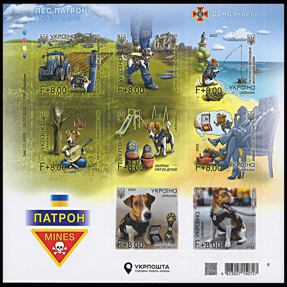 30.08.2022 : The postal issue is dedicated to dog Patron, a favorite of adults and children, the mascot of Ukrainian rescue workers, and a welcome guest at public events.