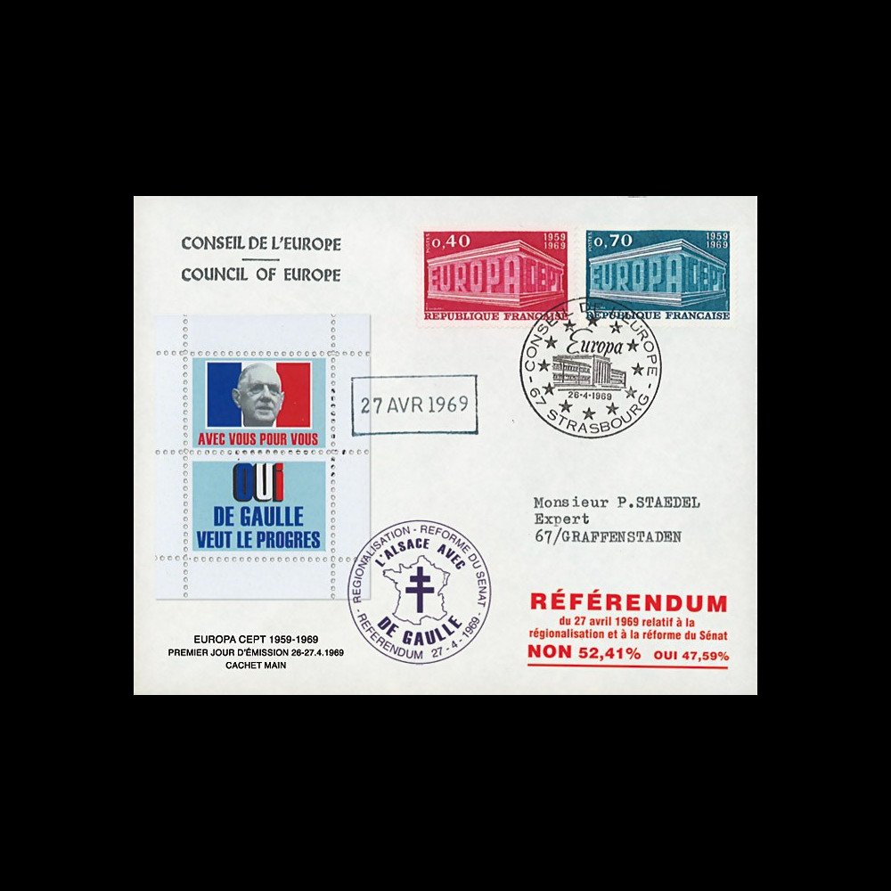 "Europa 69, TYPE HAND CACHET / de Gaulle - Referendum of 27th April".