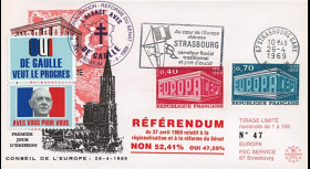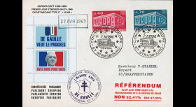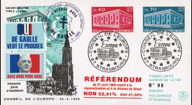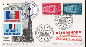 N°EU56C-DG : FDC "Europa 69, TYPE CACHET MACHINE 2 / de Gaulle - Referendum of 27th April".