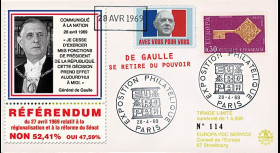 Postmarkeg with PURPLE cachet “Alsace with de Gaulle“ dated April 27, 1969