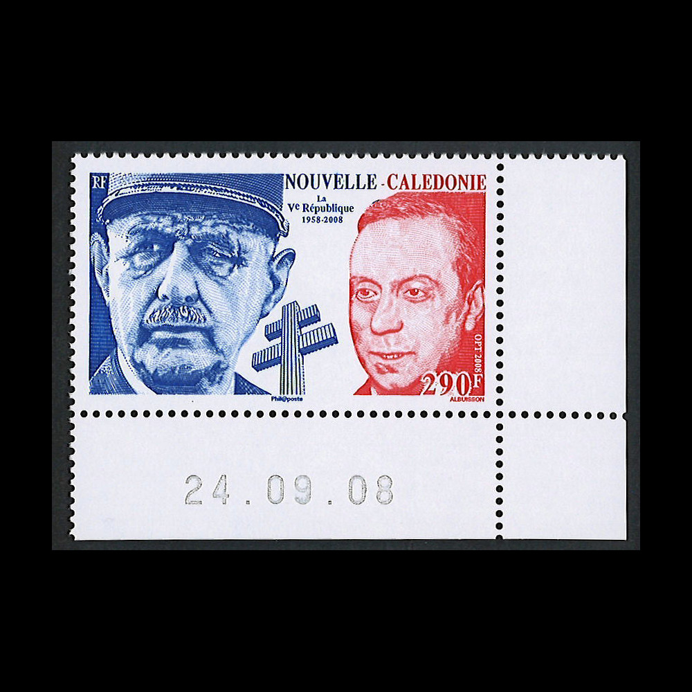 REP08-NCD New Caledonia 290F "Fifth French Republic 1958-2008 DE GAULLE - DEBRÉ" dated corner (MNH)