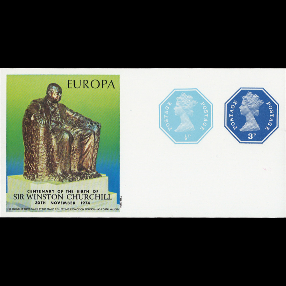 No. CHUR74-GBBN: GREAT BRITAIN 1974 - 3p, 1/2p BLOCK “Europa 1974 - Churchill Centenary, First Lord of the Admiralty (1874-1965)”