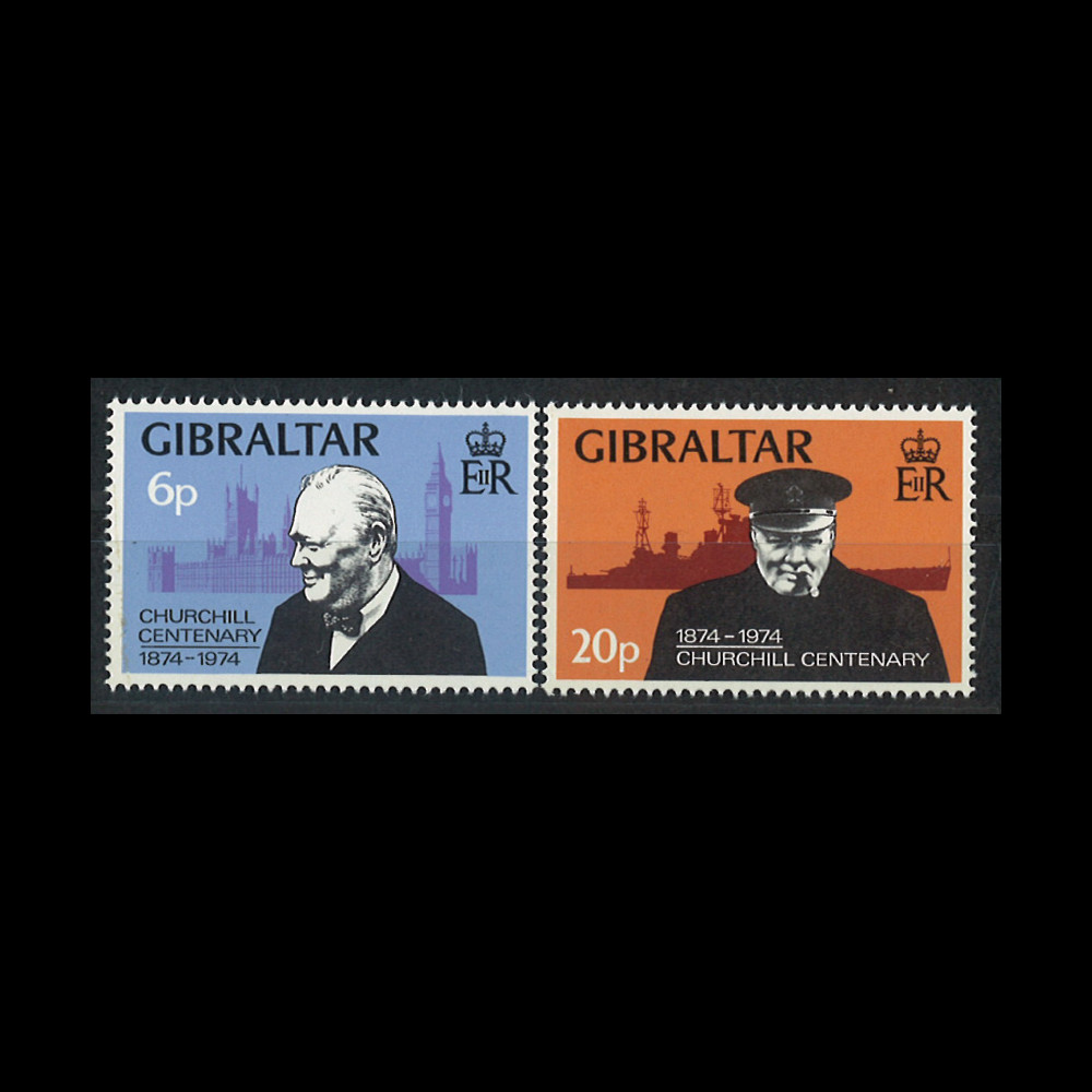 No. CHUR74-GIB1-2N: GIBRALTAR (GB) 1974 - 2 values "Centenary of the birth of Winston Churchill, Prime Minister and First Lord of the Admiralty (1874-1965)"