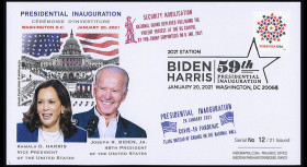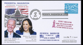 - 2 postmarks Washington DC “Biden Harris 59th Presidential Inauguration JAN 20, 2021” and “Presidential Inauguration Day JAN 20, 2021“