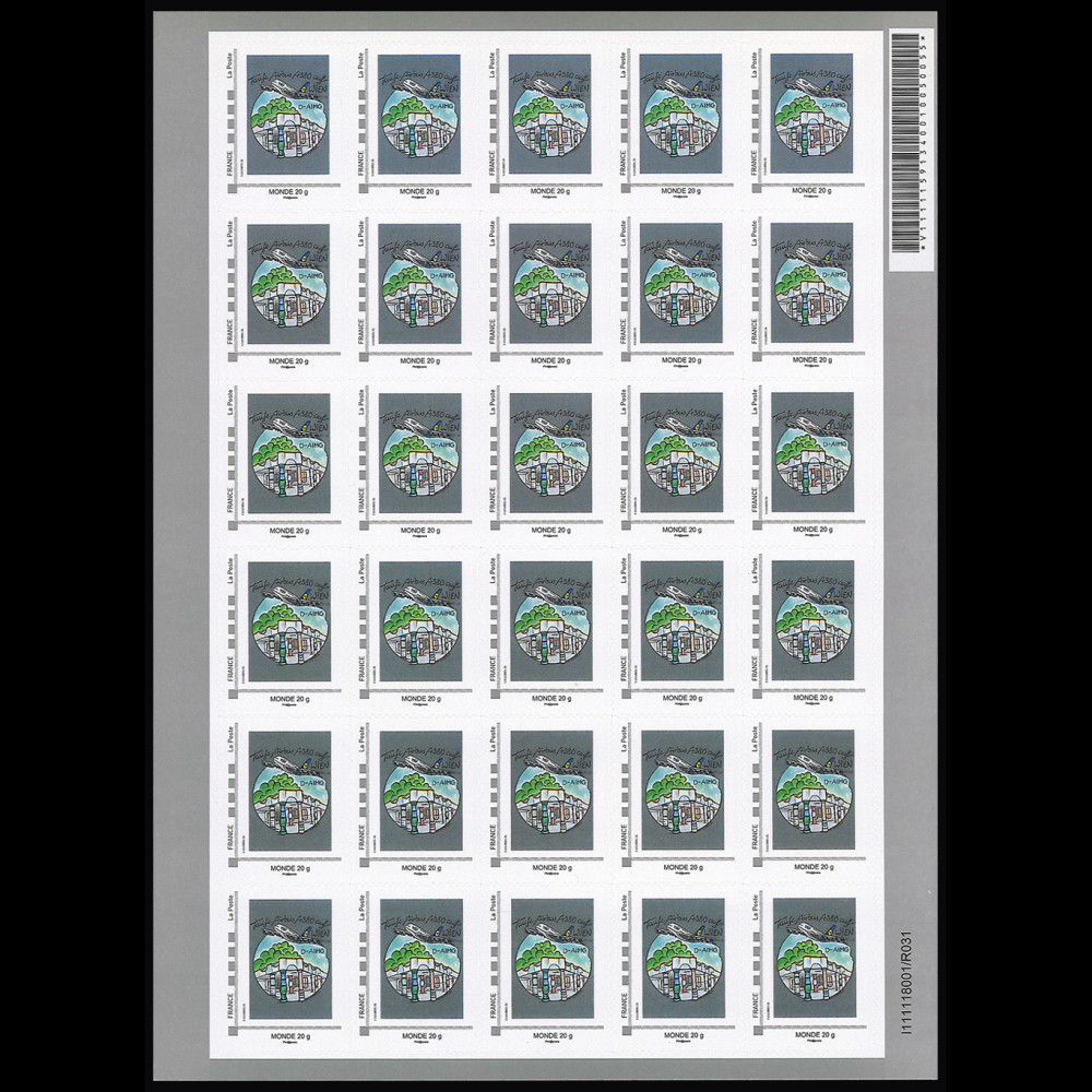 N°A380-141P: FRANCE 2011 - Whole sheet of 30 Personalized Postage Stamps (TPP) 20g World VERTICAL "Baptism AIRBUS A380 LUFTHANSA D-AIMG Wien - Taufe Airbus A380 Lufthansa D-AIMG auf Wien"