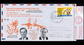 After the fall of the Berlin Wall, François Mitterrand called for a reform of the Atlantic Alliance. This was the main purpose of his meeting with President George H. Bush in Saint-Martin in December 1989. An exceptional series of numbered envelopes, carried aboard the Presidential Concorde F-BVFF, commemorates this historic meeting.