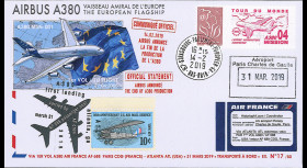 250 aerophilatelic covers “End of production of the A380“, carried from the European Parliament in Strasbourg via Paris CdG (France), on board the 1st flight of the Air France A380 to Atlanta