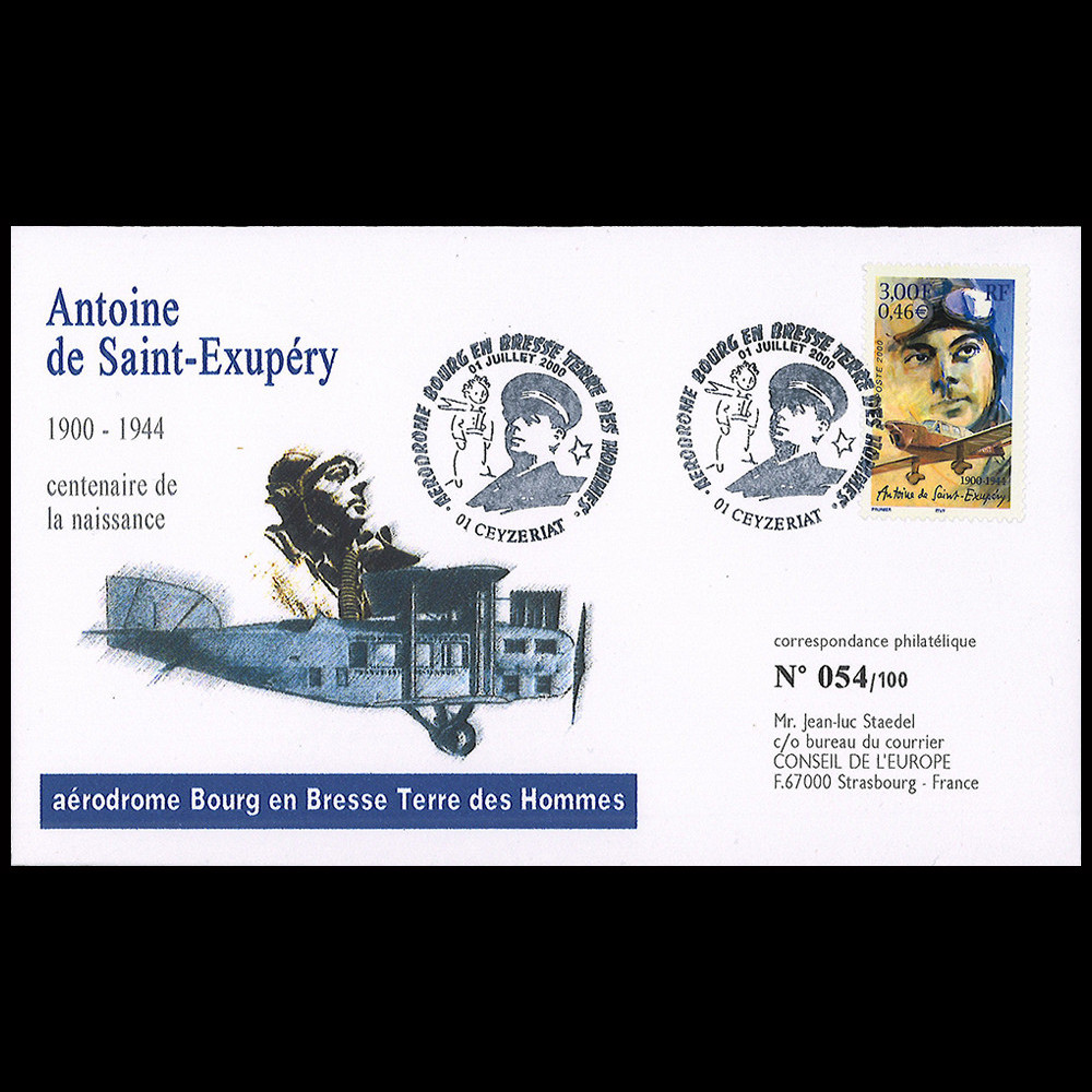 Postage 3,00F/0,46€ "Antoine de Saint-Exupéry 1900 - 1944"
