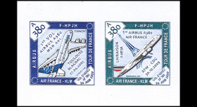 These Airmail labels had been produced to be affixed to the aerophilatelic covers carried on board the "FAREWELL FLIGHT AF 380" of June 26, 2020, marking the final withdrawal of the Airbus A380s from the Air France fleet.