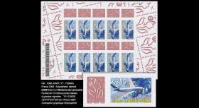 N°A380-34N3F: FRANCE 2006 - COLLECTOR's SHEET of 10 PERSONALIZED ADHESIVE STAMPS 0,86€ purple-brown "Marianne de Lamouche" with adjoining large label "12.12.2006 - Presentation of the Airworthiness Certificate for the Airbus A380 - Flagship of Europe" (Yvert et Tellier F3969A / 2023 quotation: 170€)