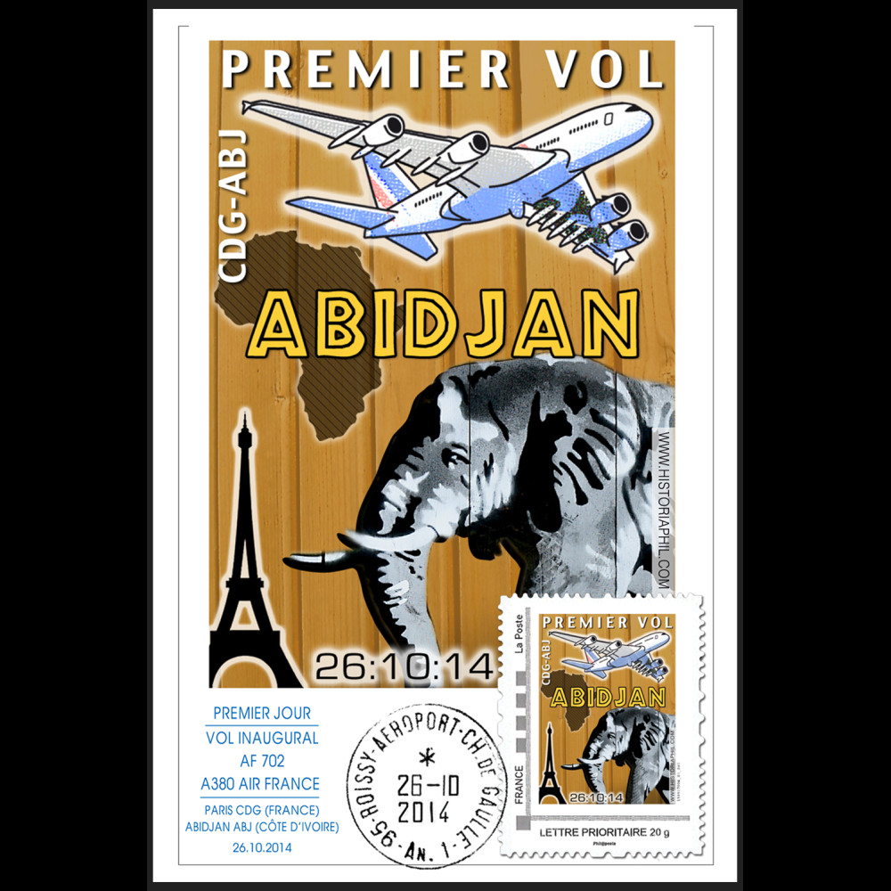 - BLACK stamp “1st flight A380 AF 702 Paris-Abidjan”