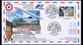 On June 12, 2003, the “Concorde F-BVFA” of the Air France fleet made its last withdrawal flight from Roissy CdG airport to the Smithonian National Air & Space Museum in Washington DC (USA), where it will be solemnly handed over to be permanently exhibited. A series of exclusive philatelic souvenirs, issued during the Smithonian Opening Day on December 15, 2003, commemorates this last flight.