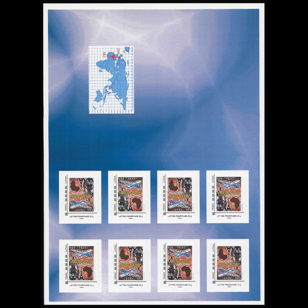A collection of personalized postage stamps and aerophilatelic covers in limited editions, bearing the special stamps of the inaugural outward and return, was carried out especially for the “TEST FLIGHT” and the “first A380 Paris - Abidjan flight” of Air France.