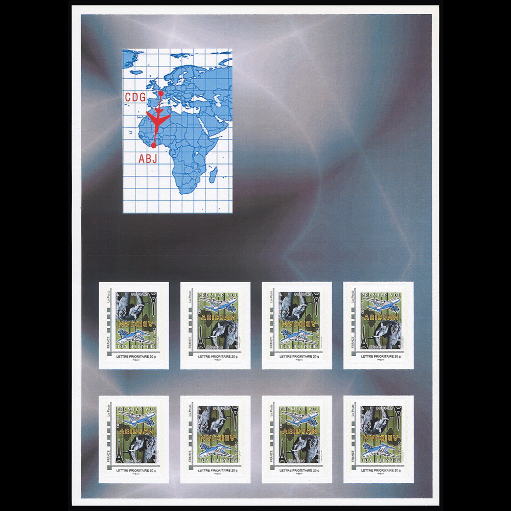 A collection of personalized postage stamps and aerophilatelic covers in limited editions, bearing the special stamps of the inaugural outward and return, was carried out especially for the “TEST FLIGHT” and the “first A380 Paris - Abidjan flight” of Air France.