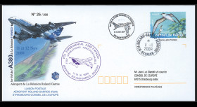 In commemoration of "50 years of the first flight of Concorde 001", Historiaphil, in collaboration with Air France cabin crew, have designed a series of aerophilatelic covers carried on board the Air France Airbus A380 first flight Paris (France) - Atlanta (USA).