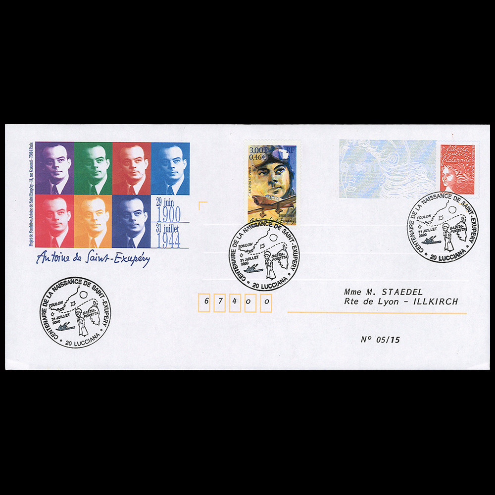 - Picture cancellation Lucciana (Borgo Airfield, Corsica) "Centenary of the birth of Antoine de Saint-Exupéry" 31 July 2000