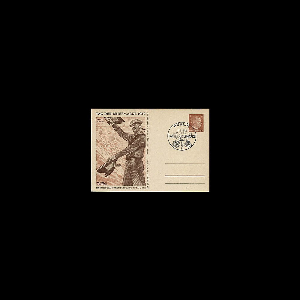 N°T67-2 T2 : Entire postal "3Pf brown Dt. Reich, portrait Hitler - Stamp Day 1942" illustration (type 2) "Kriegsmarine" (exists 4 types of illustrations).