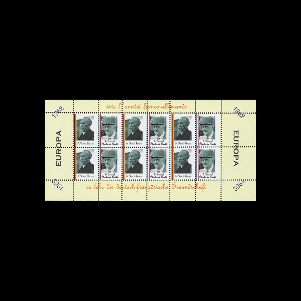 N°FRAL-2FD : Sheetlet of 12 perforated labels «EUROPA 1962 Long live Franco-German friendship - General de Gaulle and Chancellor Adenauer»