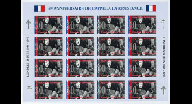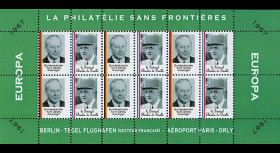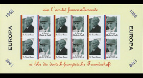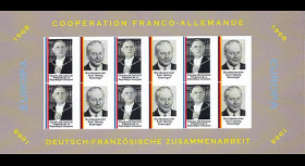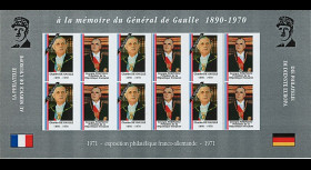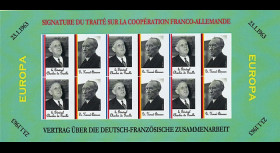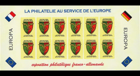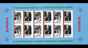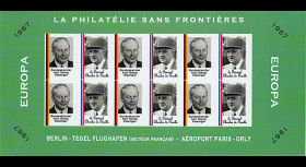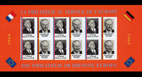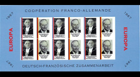 N°FRAL-9FND : Sheetlet of 12 non-perforated labels «EUROPA 1967 - Philately Without Borders - General de Gaulle with military cap and Chancellor Kiesinger»