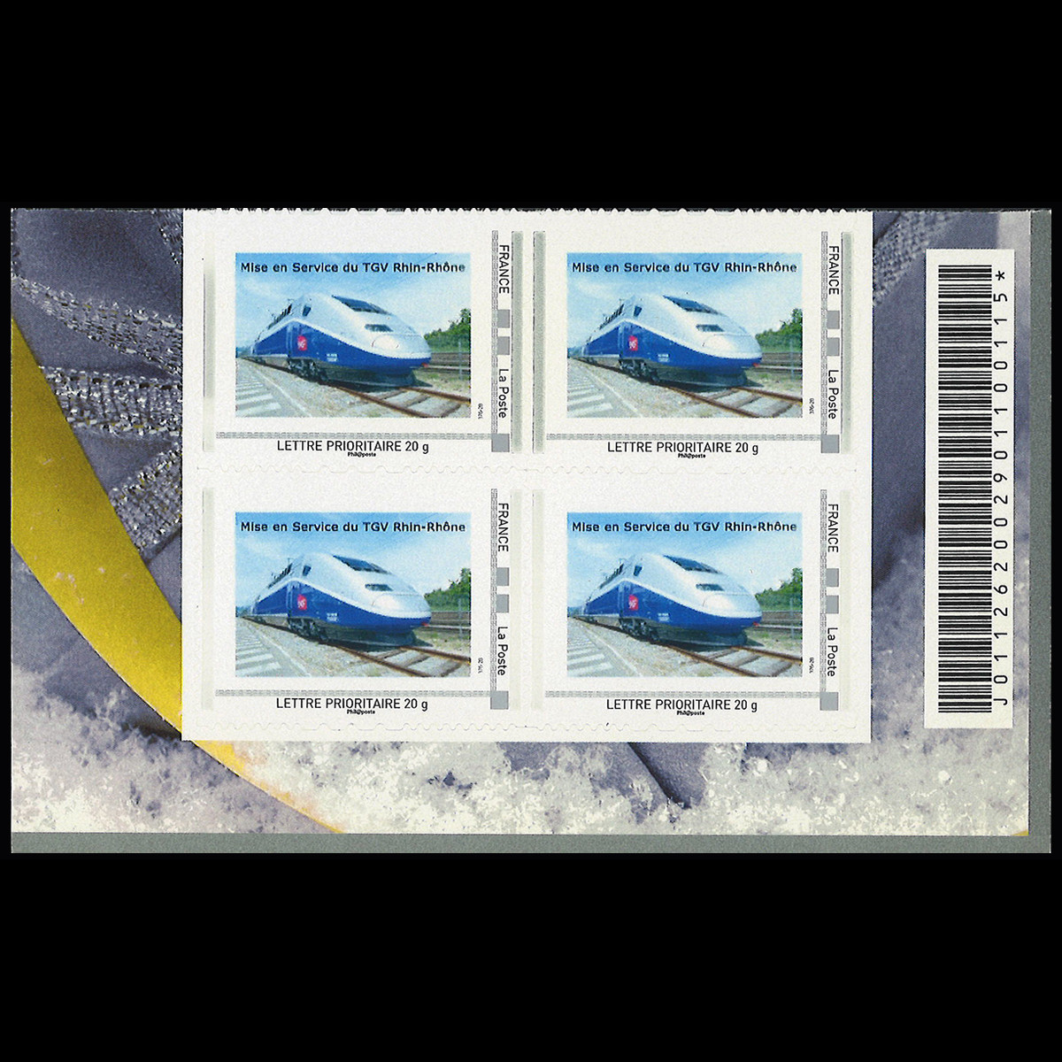 N°TGV11-2B4 : FRANCE Block of 4 values Personalized Stamps Priority letter 20g "Commissioning of the French Rhin-Rhone TGV (High Speed Train)" 2011