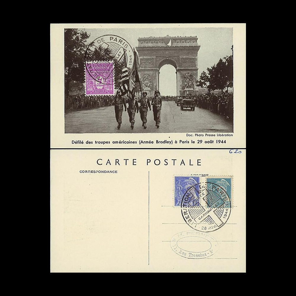 Illustrated cancellation Paris 'Liberation Paris, Musée Carnavalet' 11.11.44 Verso : 10c + 50c 'Mercury' (YT 546/549) ou 5c + 50c 'Triumphal Arch'