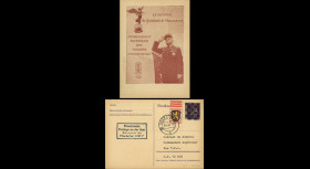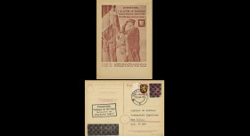 NEY46-3E : Prepaid card Postkarte 6Pf pink propaganda slogan with double overload “Hitler caged“ (P314) “General de Goislard de Monsabert, Senior Commander of the French Occupation Troops“