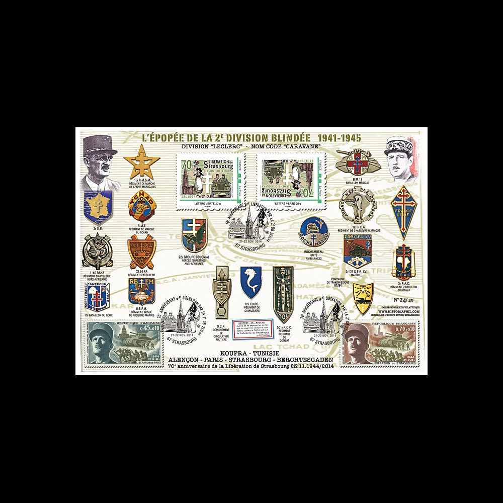LIB14-STR2V : Maxi-FDC COLLECTOR Edition (First Day) "1941-1945 : Epic of the 2nd Armored Division - Leclerc Division"
