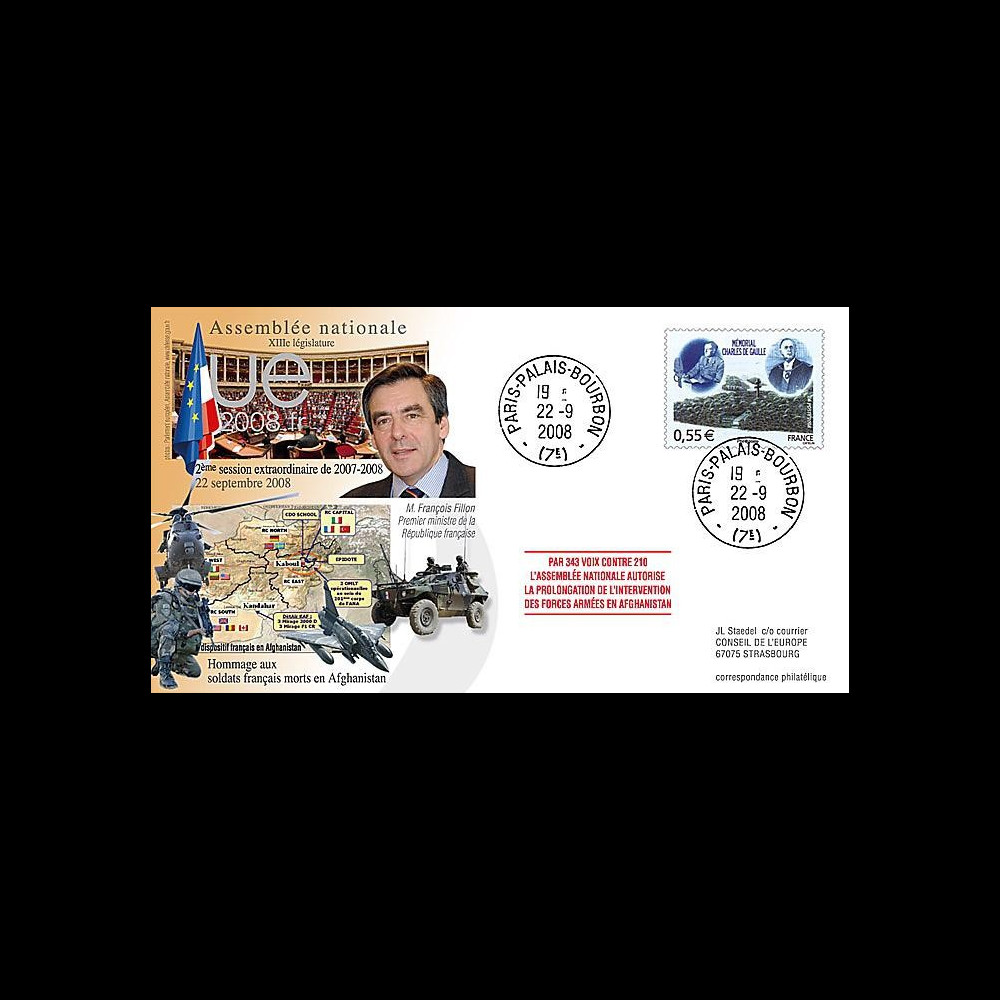 N°AN08-AF type1 : envelope FDC 'Prime Minister Mr. François FILLON - The national Assembly allows the extension of the intervention of the armed forces in Afghanistan'