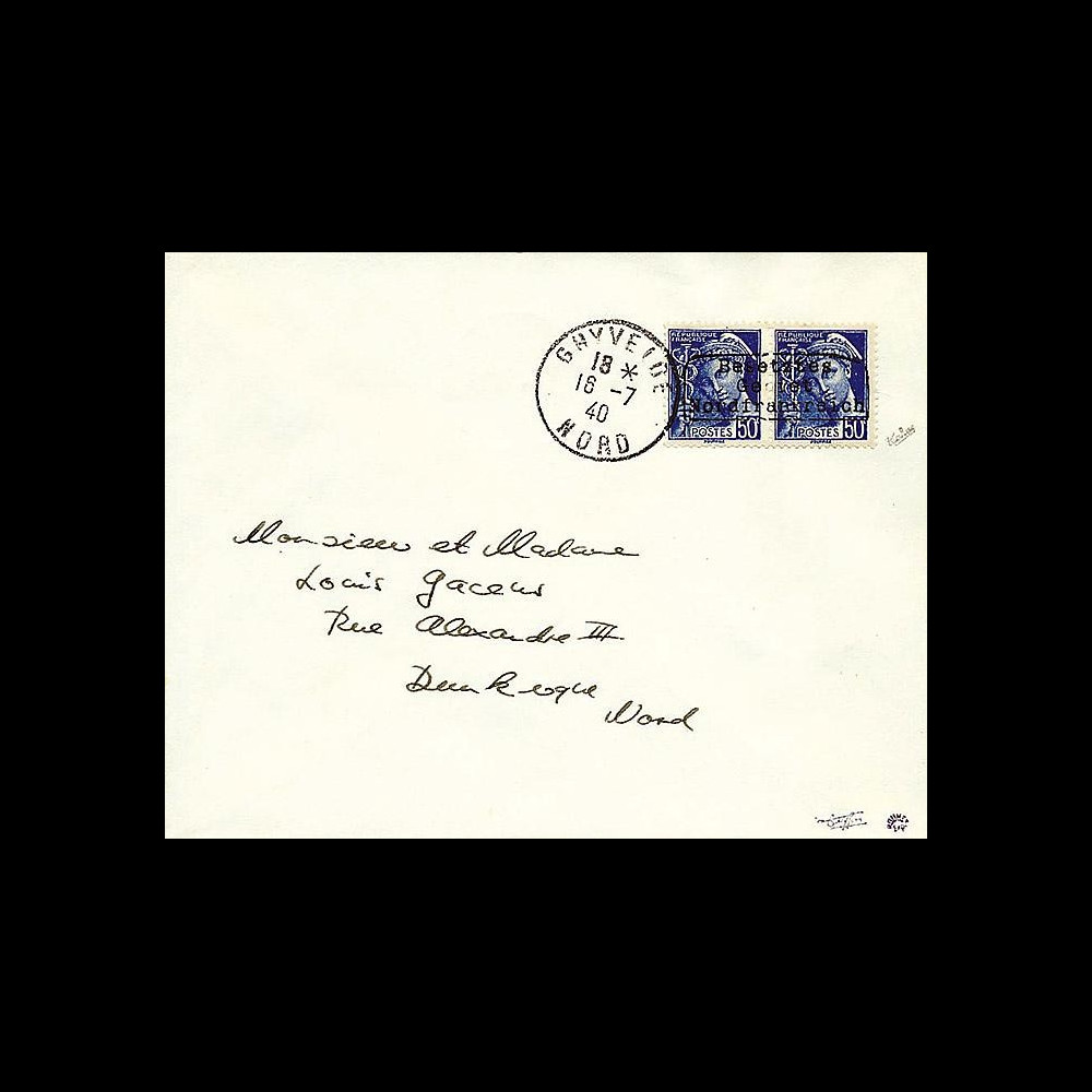 N°DUN-2: FDC with pair 50c blue "Mercury" overturned Dunkerque "Bezetztes Gebiet Nordfrankreich"