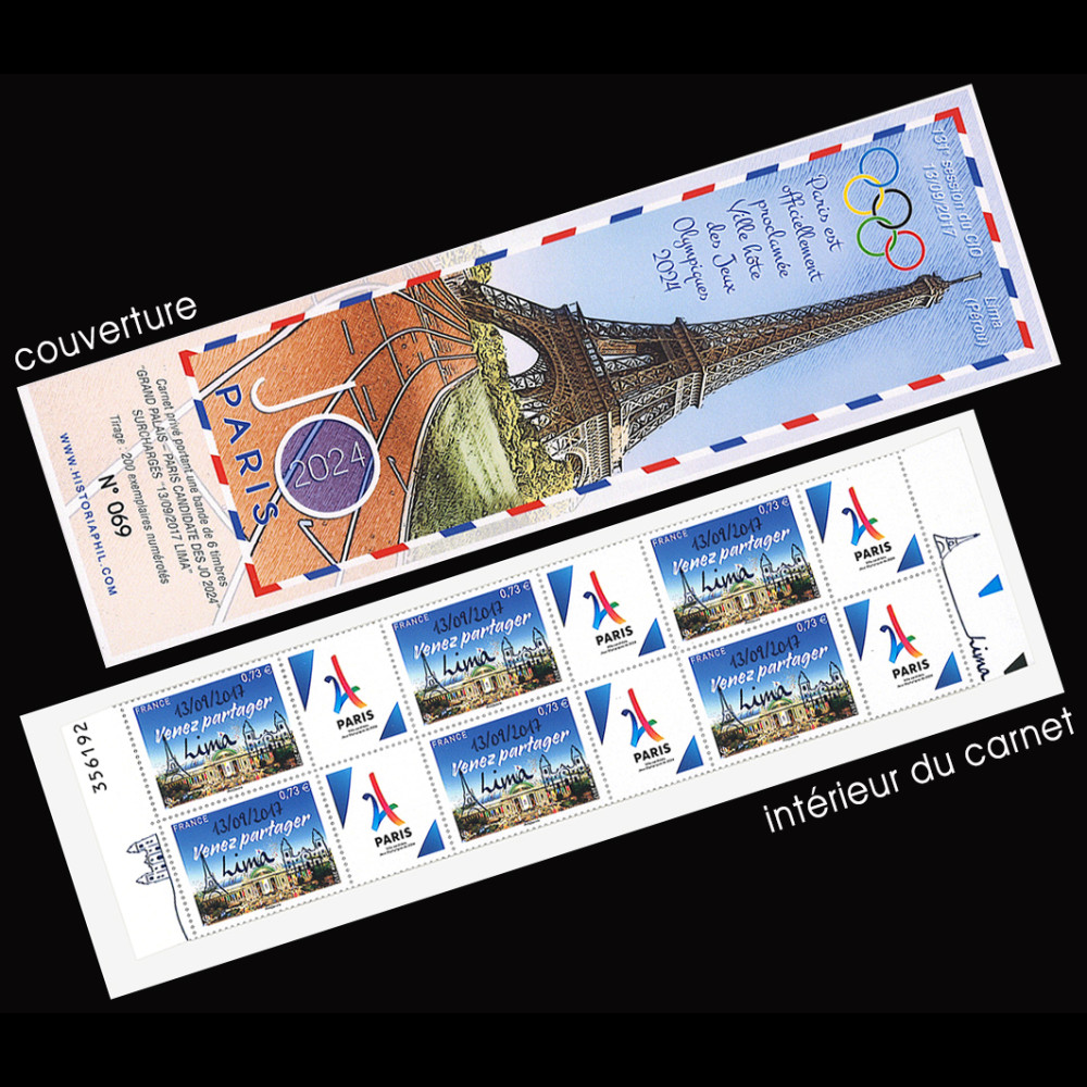 On this occasion, Phil@poste (France) obtained exceptional authorization from the Paris bid committee - which will see its mission stop on September 30 - to be able to carry out a special overprint "13/09/2017, LIMA" on the sheet of 24 stamps "Grand Palais - Paris candidate of the Olympic Games 2024" registered in the philatelic program and issued last May.